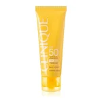 ضد آفتاب جوانساز و ضد چروک کلینیک CLINIQUE مدل سولار اسمارت از پوست در برابر عوامل محیطی آسیب رسان UVA/UVB و سایر محرکهای پوستی محافظت میکند. این ضدآفتاب، فرموله شده با ویتامین c، هیالورونیک اسید است که پوست شما را آبرسانی کرده و موجب نرمی و لطافت پوست شما میشود. این محصول بی رنگ با پوشش دهی مناسبی که دارد و ظاهری صاف و یکنواخت به پوست شما میدهد.. این ضد آفتاب با کمپلکس انحصاری solarsmart با علائم پیری زودرس پوست مبارزه میکند و با ترمیم و بازسازی بافت پوست از پوست شما در برابر تاثیرات پرتوهای فرابنفش نور خورشید به خوبی محافظت می کند. این ضد آفتاب یک ضد آفتاب مینرال و فیزیکی نیز میباشد این محصول، فاقد از هرگونه پارابن، عطر، روغن، رنگ مصنوعی، الکل و سولفات است و برای هر نوع پوستی مناسب است.